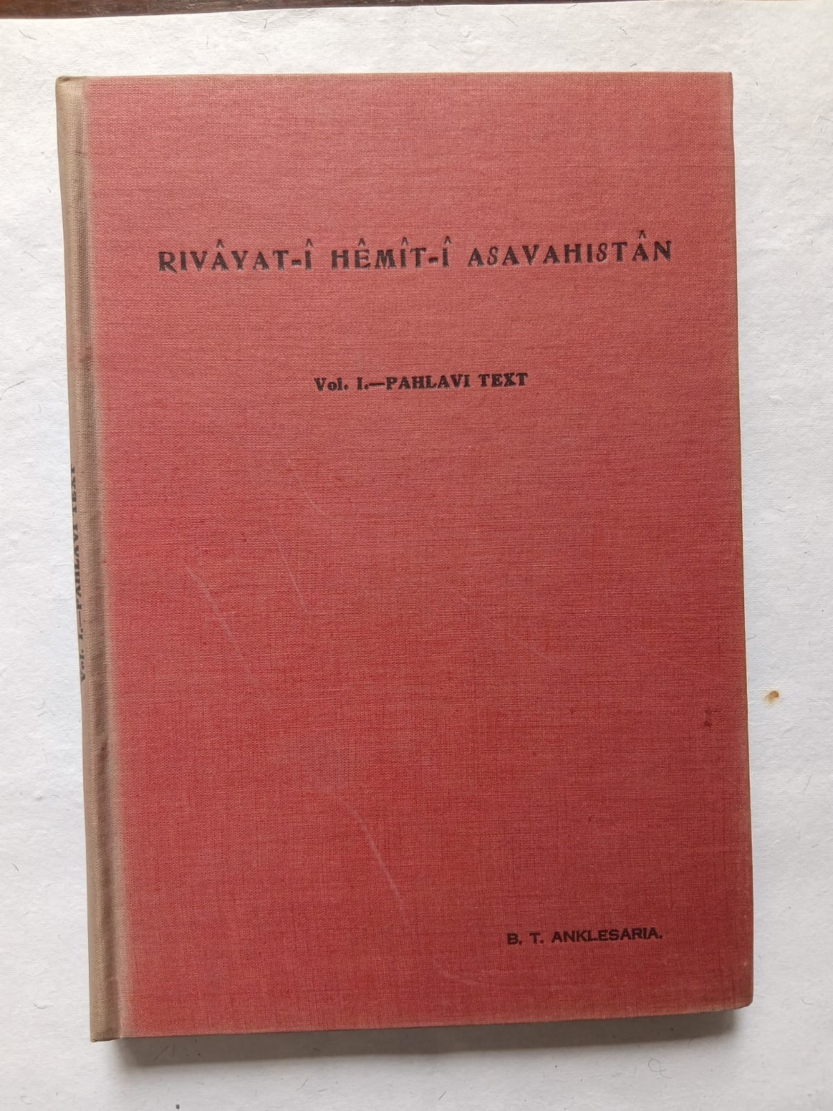 Revayat-I Hemit-I Asavahistan Vol. 1 – Pahlavi Text. 1962. by B. T. Anklesaria